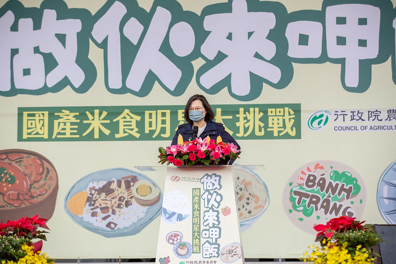 蔡英文總統今(17)日上午出席「『做伙來呷飯』國產米食明星大挑戰-食農教育推廣活動」時表示,為持續提高稻米產業競爭力,政府提升水稻栽培技術,並拓展海內外銷市場,也推動「臺灣米標章」,期望提升民眾對餐飲食米來源的信心,建立臺灣米優質形象。總統也請國人一起用行動支持國產米食,共同促進在地經濟及農業永續發展。