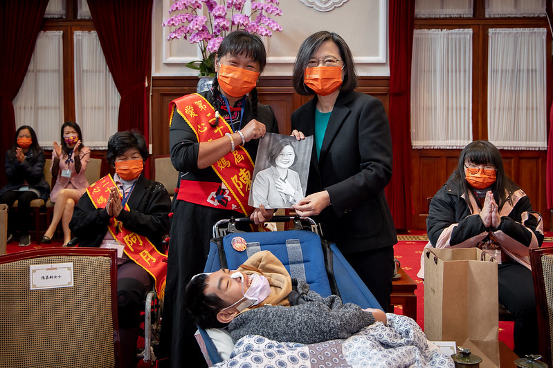 蔡英文總統今(19)日上午接見「『第28、29屆全國十大傑出愛心媽媽慈暉獎』得獎人」,對得獎愛心媽媽們的奉獻與付出表達高度敬意,並表示,政府會持續努力,為身心障礙朋友創造更友善的生活環境。她也期盼,透過更周全的政策和管道,提升整體社會對身心障礙者的支持。