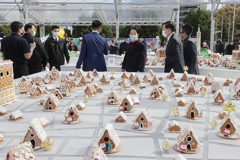 副總統抵達後,首先參觀以臺北市街道與地標為藍圖的薑餅城。接著,欣賞小朋友「聖誕老公公」舞蹈表演,並接受小朋友代表贈送聖誕禮物。