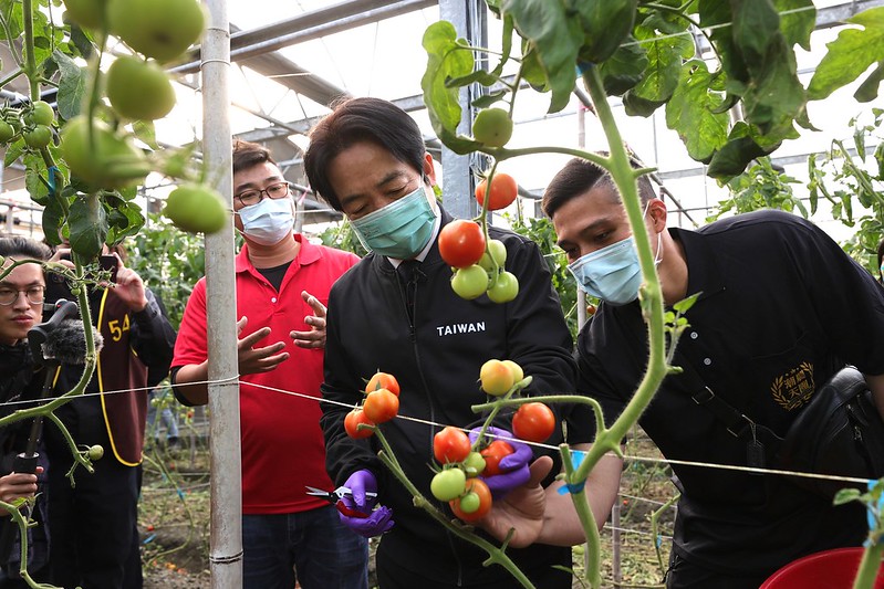 副總統抵達後,首先參觀「潮農天團」農場,並體驗番茄採收實作,之後也聽取創辦人徐崇評農場簡報,了解農場成立過程與未來展望。