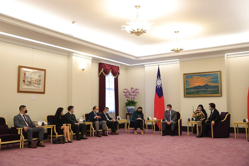 隨後,薛瑞福主席致詞時表示,訪團成員中,有些人是第一次來到臺灣,也有很多人數度到訪。過去常訪臺的成員,因為全球疫情以及旅行上的困難,也很久沒有來臺訪問。以他個人來說,非常高興可以回到臺灣,並再次見到賴副總統,可以多花一些時間來瞭解臺灣。