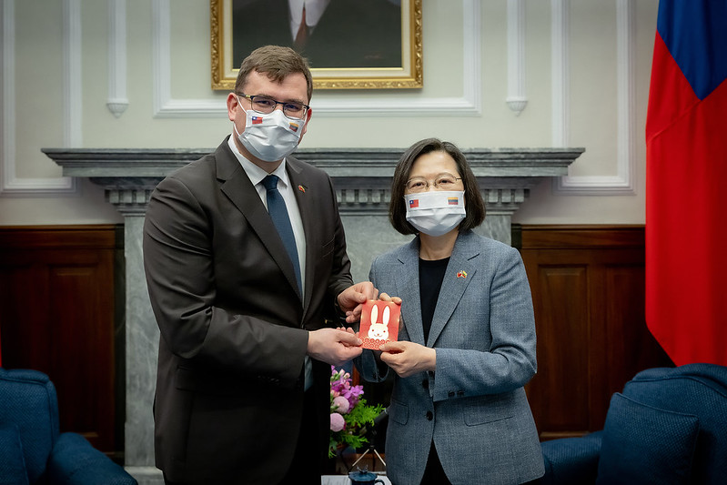 總統說,臺灣和立陶宛也在許多國際關切的議題上加強合作。這次訪團來訪將針對防制假訊息、網路安全、全民國防等議題,和我國相關部會及專家交換意見。