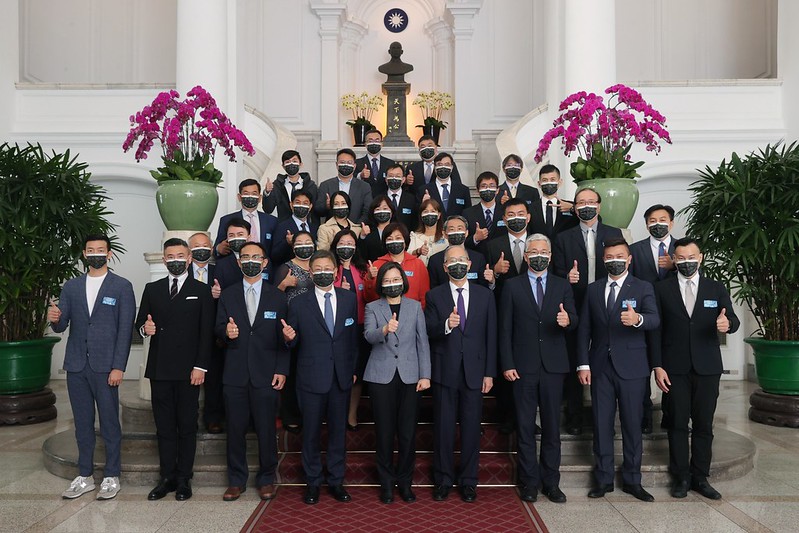 訪賓一行包括新竹市長高虹安,由2022建築園冶獎主任委員黃啟倫及高雄市建築經營協會理事長呂萬卿率領,內政部次長吳堂安陪同,前來總統府晉見總統,總統府秘書長李大維也在座。