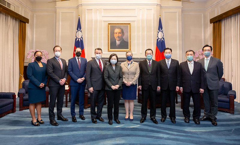 訪團一行由外交部長吳釗燮及美國在台協會臺北辦事處處長孫曉雅(Sandra Oudkirk)陪同,前來總統府晉見總統,國家安全會議秘書長顧立雄也在座。