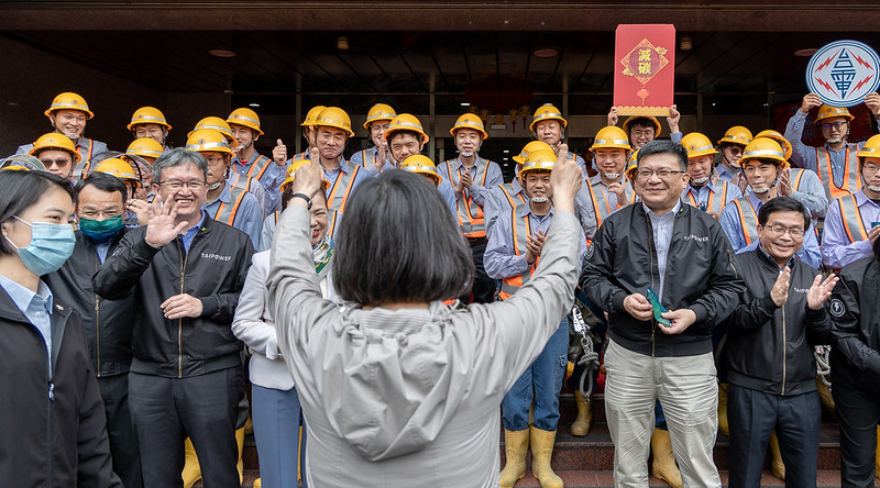 總統在致詞時表示,今天是大年初二,她先跟大家說聲新年快樂。在新年期間,台電在全國各地,每天各個時段,一共會出動4000人次以上的值班同仁,持續維持全國供電穩定。今天,她特別來感謝所有辛苦的人員,也要向在第一線進行搶修維護的同仁說聲謝謝,大家真的辛苦了。