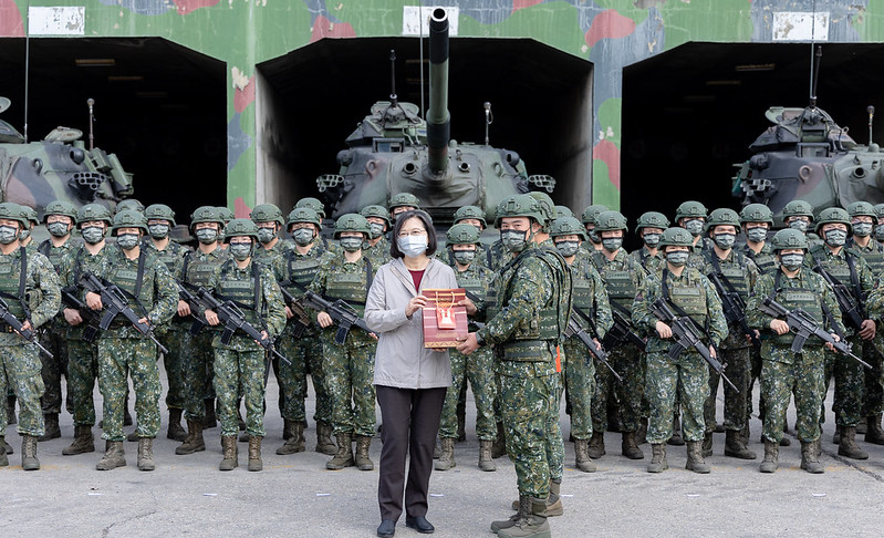 總統表示,新的一年,她要請大家繼續努力,利用各項訓練任務和基地測考強化戰技,讓國人對中華民國國軍更有信心。