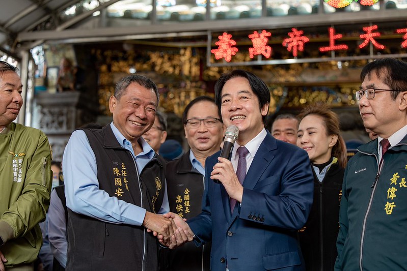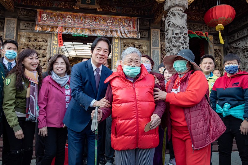 今(28)日是農曆大年初七,賴清德副總統先後前往臺南市中西區台灣首廟天壇、新營太子宮、新營上帝廟(真武殿)、麻豆天后宮、北區開基玉皇宮、永康大灣廣護宮、關廟山西宮、安平開台天后宮、安平觀音亭等廟宇參香祈福,發送兔年新春福袋向民眾賀年,並代表總統為麻豆天后宮揭贈匾額「澤被群黎」。