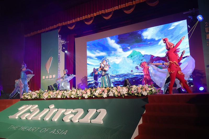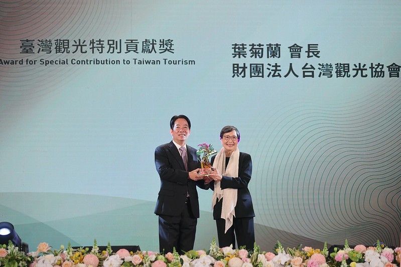 隨後,副總統頒發「臺灣觀光特別貢獻獎」予台灣觀光協會會長葉菊蘭及總統府國策顧問暨麗寶集團董事長吳寶田。接著與現場貴賓一同進行啟動儀式。