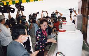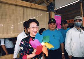 隨後,副總統轉往台北縣金山鄉參加該鄉所舉辦的國際景觀雕塑展開幕儀式,除應邀致詞外,也參加各項開幕活動,為該鄉觀光全力促銷。副總統並在創意DIY教室親自製作七彩轉運風車,寫下「台灣新生起飛」六字,希望她所倡導的「四生」|生命、生活型態、生產、生態|改造,可以順利地為正在因應SARS挑戰的台灣,帶來新生。