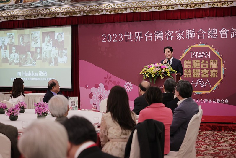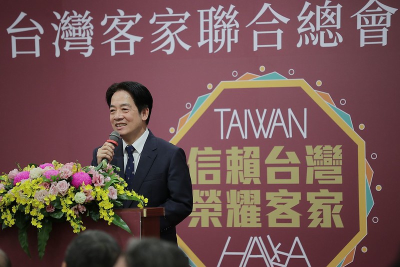 賴清德副總統今(10)日晚間應世界臺灣客家聯合總會之邀,以「信賴臺灣 榮耀客家」為題進行演講,感謝不同世代的客家子弟為臺灣這塊土地所做的貢獻,也說明政府的各項客家政策,並期待所有客家鄉親都能秉持義民精神,與政府一起拚經濟、顧民生、強國防、保和平。