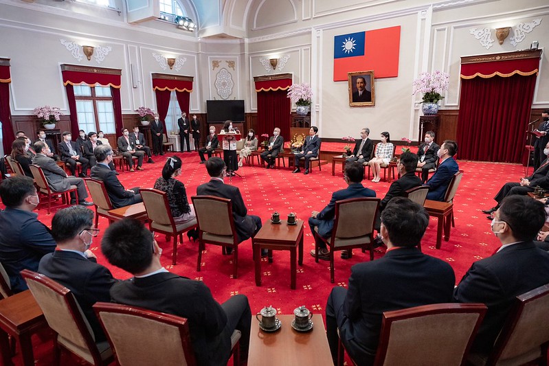 副總統致詞時,首先代表蔡總統歡迎訪賓一行來到總統府,特別歡迎亞洲藥學會的成員訪臺,這次來訪深具意義。