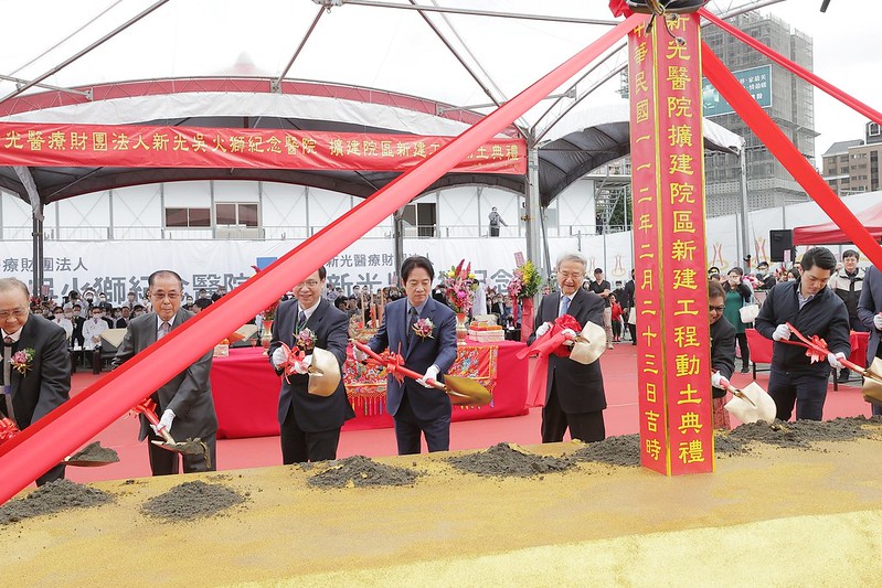 賴清德副總統今(23)日上午出席「新光醫療財團法人新光吳火獅紀念醫院擴建院區新建工程動土典禮」,感謝新光醫院在疫情期間成功扛起社會責任,也幫助國家協助帛琉醫療服務,加深兩國邦誼。他期許新院區擴建完成後,讓醫療人員有更好的服務空間,造福更多民眾。