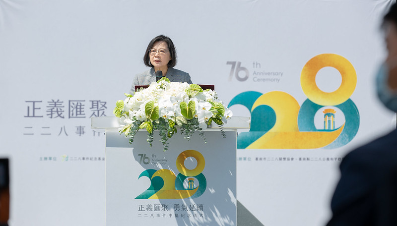 蔡英文總統今(28)日上午前往臺南出席「二二八事件76周年中樞紀念儀式」,除向受難英靈獻花致敬,並表示,轉型正義的工作是和時間在賽跑,這是受難者前輩和家屬們長年期盼的事情,也是臺灣民主化以後,政府責無旁貸的任務,請各部會務必堅定立場,加速落實各項工作。讓臺灣人尊嚴地追求自由與繁榮、尊嚴地跟世界來往、尊嚴地做自己,就是紀念二二八最好的方式。
