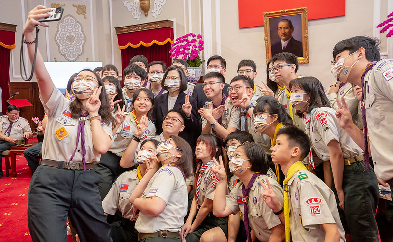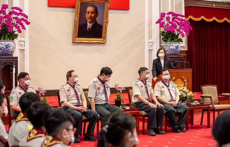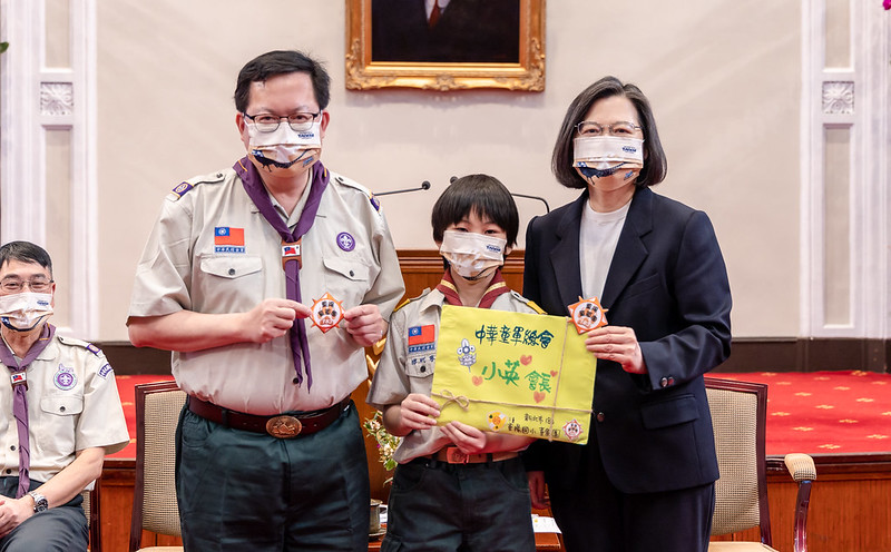 蔡英文總統今(3)日上午接見「中華民國童軍總會代表團」,肯定所有童軍夥伴為臺灣帶來積極正向的力量,在國際事務上也展現臺灣人道關懷的精神。她期許大家持續關心國際議題、積極參與國際事務,讓世界看到臺灣,也讓世界走進臺灣。