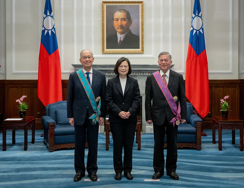 總統致詞時表示,李前秘書長和沈前副院長曾經是執政團隊最重要的成員,一位是長於外交、兩岸及國安領域,另一位是長於經濟、產業及能源領域。過去,他們在不同的公職崗位上,為國家的發展、產業的進步全力以赴,他們專業優秀的表現,大家也是有目共睹。