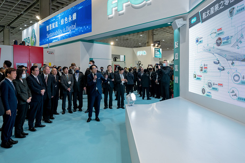 隨後,總統與現場貴賓一同進行揭幕儀式,並參觀展區,之後也與臺灣機械工具機業者座談。