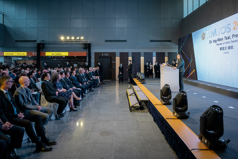 總統致詞時表示,「台北國際工具機展」是機械產業界的盛事,「這個盛事真的是不得了」,大家看到了今天的媒體報導,都特別為今年的工具機展做了特別的報導,代表國家及產業界對這次展覽的重視。從她2016年上任以來,每一次的展覽都來參加,跟產業界的朋友一起見證機械產業的進步和發展。這次的展覽是亞洲第二大工具機展,她要感謝主辦單位外貿協會及機械公會的用心,邀集上、中、下游的業者,一起展現臺灣精湛的工業技術以及雄厚的產業能量。
