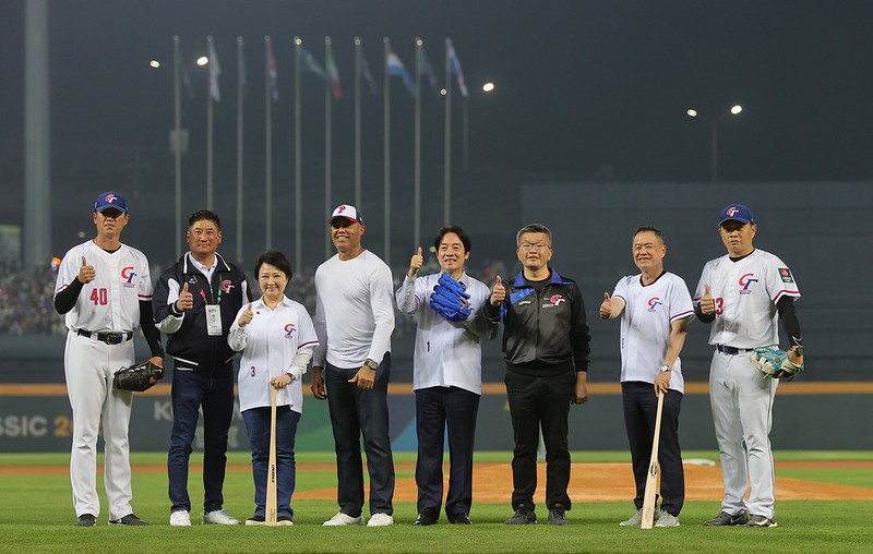 賴清德副總統今(8)日晚間前往臺中洲際棒球場觀賞「2023年第五屆世界棒球經典賽A組預賽」,與重量級棒球明星一同為球賽開球,為球員們加油喝采,並盼所有球迷朋友們一起為國家代表隊加油,享受精彩的棒球比賽。