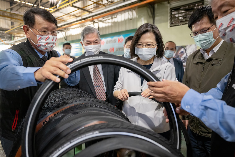 隨後,總統在楊董事長說明下參觀廠區,實地了解建大電動車與自行車輪胎生產及相關作業。