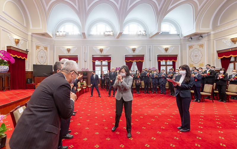 總統指出,去年,內政部已經提出「淨零建築路徑藍圖」,來提升節能減碳的新技術,並且進一步提高、改善建築的能源效率。而中小企業是臺灣經濟發展的火車頭。過去這幾年來,政府持續推動各項政策,來協助中小企業升級。今年,我們也規劃透過「疫後特別預算」,進一步協助產業及中小企業的升級轉型,包括提供貸款跟利息補貼,推進生產型態的轉型跟再造,來達到智慧化、低碳化,以及模組化的目的。