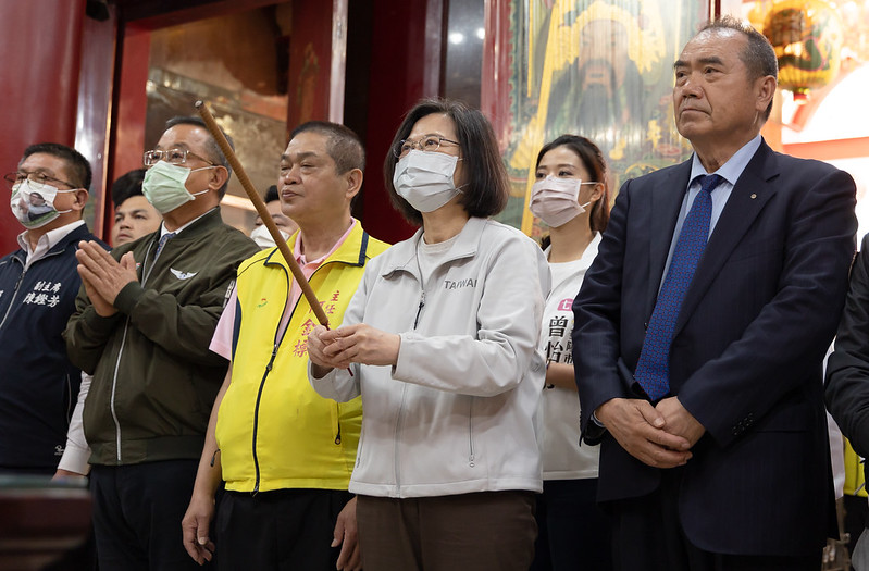 下午,總統續前往七堵慶濟宮祈福參香,向媽祖祈求臺灣風調雨順、國泰民安,現場民眾熱情歡迎總統到來。