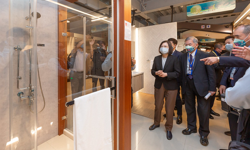 總統提到,「一太衛浴」,不只是她熟悉的好朋友,也是許多臺灣人的朋友。從百貨公司、飯店到家裡的衛浴系統,許多地方都能看到「一太衛浴」的品牌。臺灣第一套乾濕分離的淋浴門技術,就是由毅太打造。這個想法來自洪團樟董事長,在他父親住院時,注意到許多高齡患者住院,是因為在浴室滑倒,所以下定決心發展這項技術,這樣的企業精神令人敬佩。