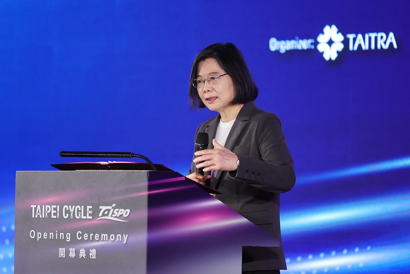 總統致詞時表示,今天大家一起參與這場盛會,不論是「台北國際自行車展」或是「台灣國際運動及健身展」,都是國際知名展覽。她感謝業界先進們的努力,現在臺灣已經是全球高階自行車及運動健身產品的製造和研發重鎮。尤其在臺灣中彰投一帶,有上千家業者一起打造出全球獨一無二的產業生態系;從各式零件供應到組裝製造,全球的自行車以及運動健身產品的創意,都可以在臺灣實現。