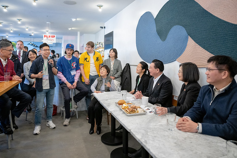 總統並與「雲海嚴選」創辦人林思妤、鄭衍莉、「Win Son Bakery盈成烘焙坊」創辦人Josh Ku、雙語音樂劇演員張祐寧、Té Company 茶店創辦人廖梓君、紐約市立大學中文系教師李明穎、由申甲文具店創辦人伉儷Neil Ni及Daisy Chen,6組來自藝術、教育、餐飲等不同領域的臺美青年面對面座談,聽取他們各自在美國發展、創業的經歷與故事。