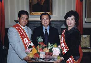九十年神農獎傑出農民得獎人:程昆生、莊竣欽、黃慶安、張國興、林三丕、黃金水、曾東峰、章居旺、陳姿樺、郭水銓、曾毓添、陳清山、古銘家、陳錦昌、蘇振耀、周金星、林金章、吳木泉、張子善、鄭瑞福、王成意、紀同、余合能、簡坤銘;傑出婦女得獎人:徐黃玉琴、蘇秀鳳、林侯素玉、陳麗能、李麗珠、廖永薇、陳鄭初枝、羅美蘭、邱美蘭、李陳雪鳳、曾菊英、廖麗華,上午由行政院農業委員會主任委員陳希煌等陪同,前來總統府晉見總統,總統府副秘書長陳哲男也在座。