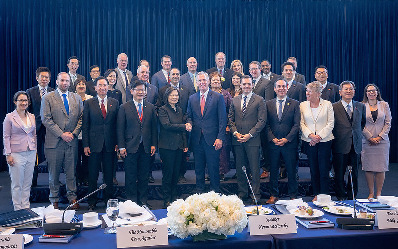 包括美國眾議院議長麥卡錫、眾議院民主黨黨團主席阿奎樂(Peter Aguilar)、「美國與中國共產黨戰略競爭」 特別委員會主席蓋拉格(Mike Gallagher )、「美國與中國共產黨戰略競爭」 特別委員會民主黨首席議員克利胥納莫提(Raja Krishnamoorthi )、「歲計」委員會主席史密斯(Jason Smith)、聯邦眾議員史密斯(Adrian Smith)、 莫頓(Seth Moulton)、馨森(Ashley Hinson)、穆納理(John Moolenaar)、朴銀珠(Michelle Steel)、魏特曼(Rob Wittman)、西曼尼茲(Carlos Gimenez)、施蒂芬絲(Haley Stevens)、布朗莉(Julia Brownley )、托雷斯(Ritchie Torres)、凱利(Trent Kelly)、匡希恆(John Curtis )、羅德薇(Aumua Amata Coleman Radewagen )、辛克(Ryan Zinke)、以及我國總統府秘書長林佳龍、副秘書長張惇涵、外交部長吳釗燮、立法委員陳歐珀、陳明文、邱臣遠以及駐美國大使蕭美琴等亦出席雙邊領袖會議。