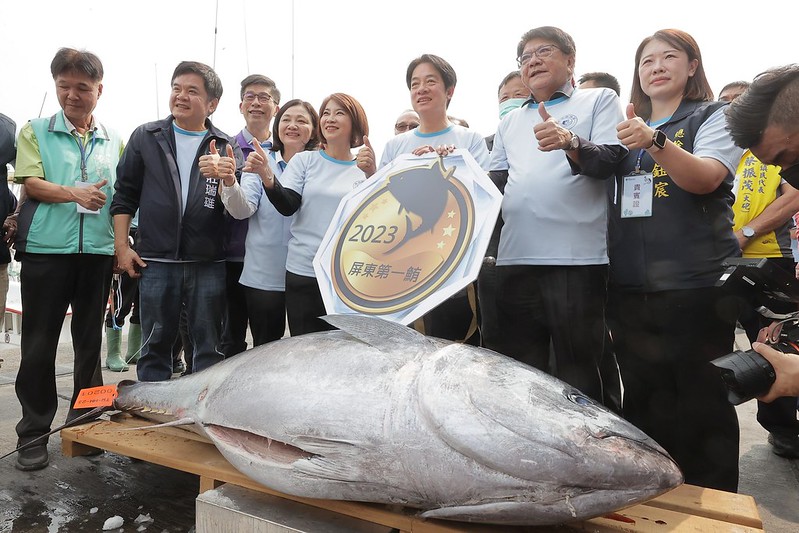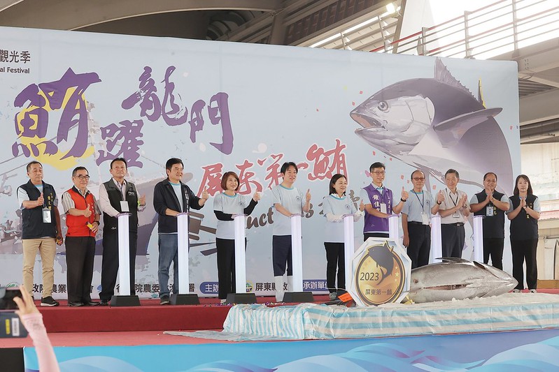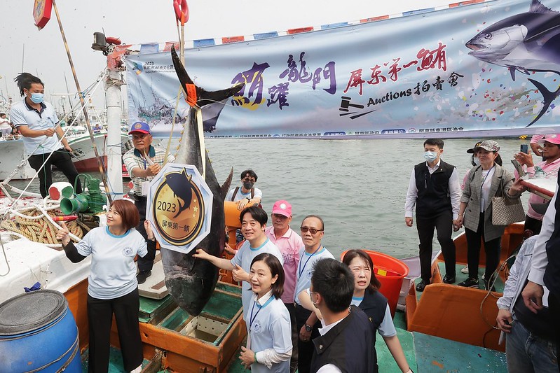 賴清德副總統今(7)日下午前往東港出席「2023屏東第一鮪拍賣會」時表示,今年「屏東第一鮪」是歷年最早返港、也是第三早捕獲的黑鮪魚,這是很好的兆頭。他也請大家珍惜漁民辛苦捕獲的黑鮪魚,多多採購、支持漁民。
