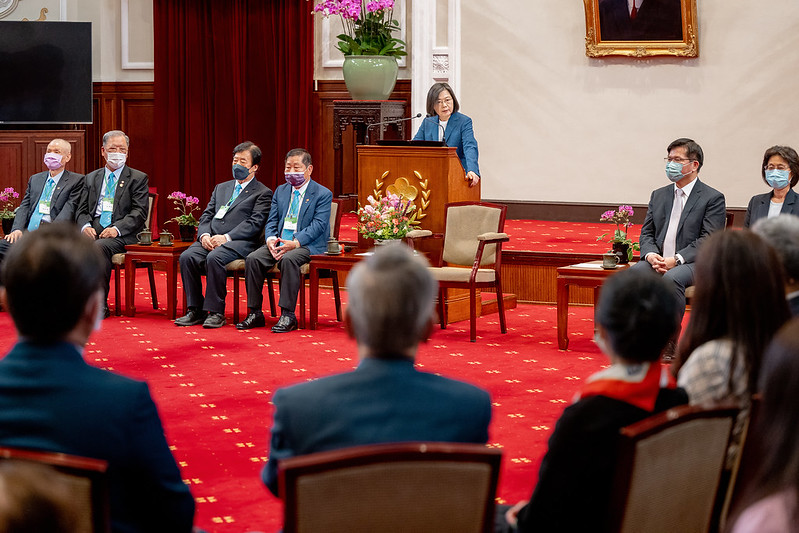 總統表示,未來臺灣走向國際、拓展國際經貿空間的腳步還會再加快。面對全球的經貿競爭,臺灣一定要持續鞏固在供應鏈的關鍵地位。這需要大家和政府一起努力,一起讓世界看見臺灣。