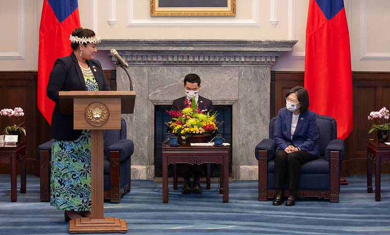 總統致詞時首先歡迎訪賓來到總統府,這是柯布雅(Kitlang Kabua)部長上任以來,首次訪問臺灣,她非常高興在全球疫情趨緩後,訪團能夠順利成行,一起促進更多的合作交流。