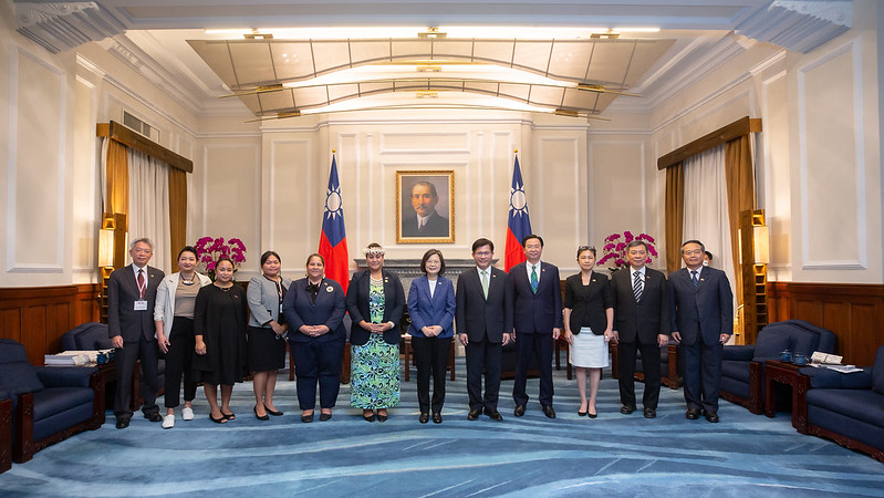 訪團一行由外交部長吳釗燮及馬紹爾群島共和國大使館臨時代辦戴安珍(Anjanette Celles Anjel)陪同,前來總統府晉見總統,總統府秘書長林佳龍也在座。
