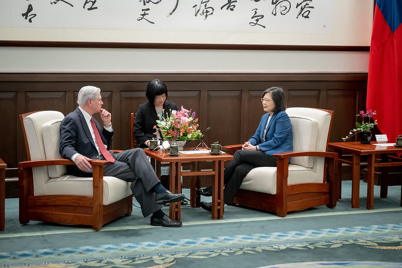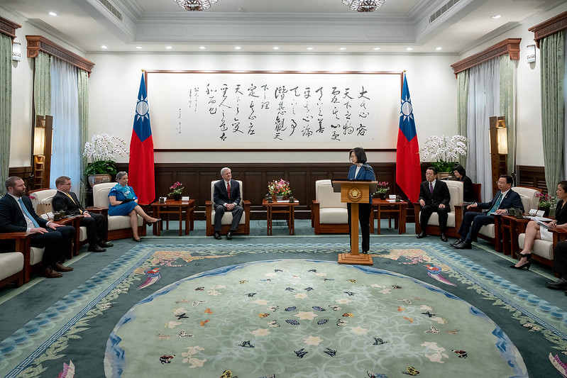 訪賓一行由外交部長吳釗燮、美國在台協會台北辦事處處長孫曉雅(Sandra Oudkirk)陪同,前來總統府晉見總統,國家安全會議秘書長顧立雄也在座。