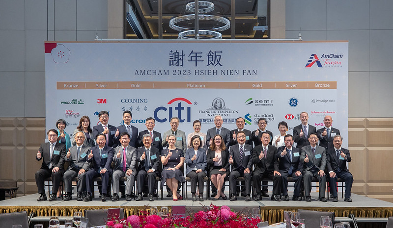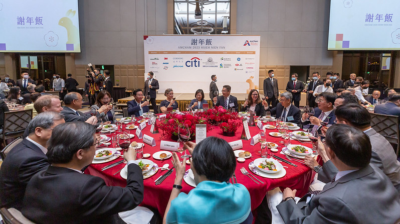 首先,我要感謝施立成會長在過去一年,為促進台灣美國商會與臺灣政府和商界關係所做的努力。在施會長的帶領下,參加謝年飯的政府官員和商界人士人數屢創新高。