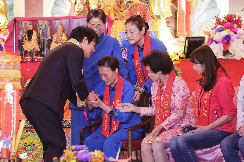 他要代表蔡總統祝賀活動圓滿成功,母娘神威顯赫、香火鼎盛,保佑臺灣國泰民安、風調雨順,臺北市四時無災、八節有慶,民眾平安順利。