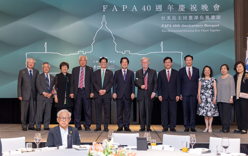 副總統提到,特別是在臺灣退出聯合國,臺美斷交風雨飄搖的那段時期,因為FAPA的前輩們遊說美國國會及政府,才有辦法順利通過《臺灣關係法》以及各項美國對臺灣的保證,他也再次表達感謝之意。