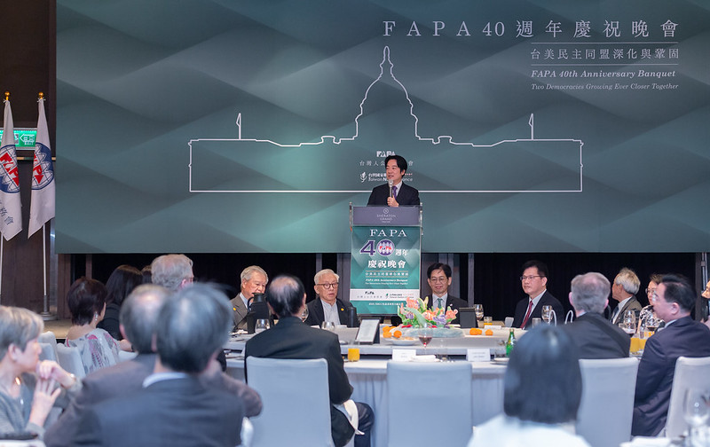 賴清德副總統今(1)日晚間出席「台灣人公共事務會(FAPA)40週年慶祝晚會」,感謝FAPA為臺灣民主自由的努力與付出。並表示,臺灣將持續增強國家力量,並與民主或理念相近的國家合作,加強彼此的聯繫與力量,希望臺灣可以在印太地區發揮關鍵力量,扮演和平發展的角色。