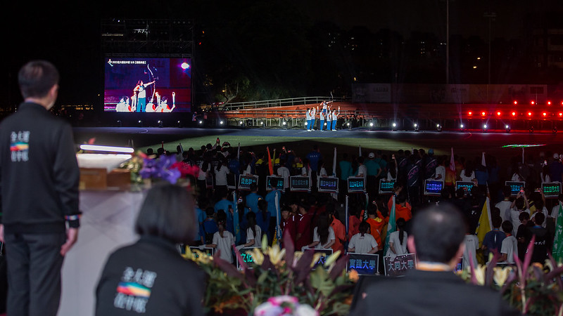 最後,總統宣布今年全大運正式開始,並與現場貴賓共同見證會旗進場及升起、運動員與裁判員代表宣誓,以及聖火進場與點燃聖火儀式。