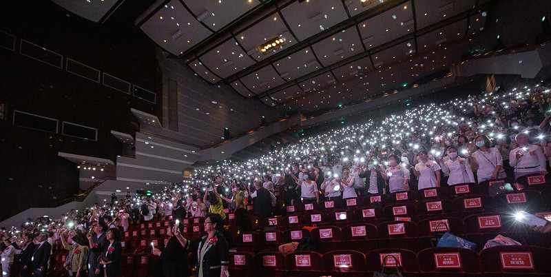 總統抵達後,首先觀賞「護理防疫影片」。隨後與護理師護士公會全國聯合會理事長紀淑靜、以及台灣護理學會理事長暨立法委員陳靜敏一同進行象徵「薪火相傳」的傳光儀式。