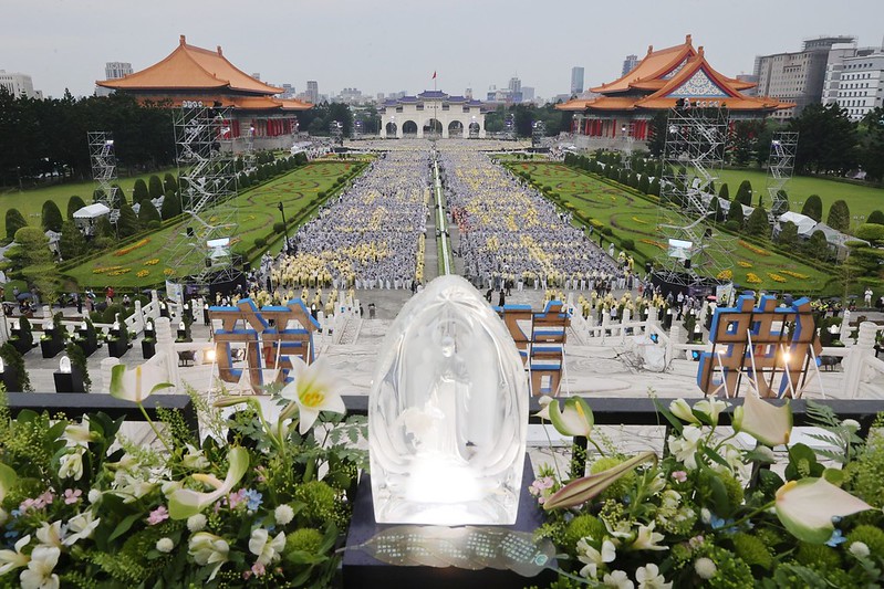 今天是母親節,也是一年一度佛誕節,「佛教慈濟基金會」晚間於兩廳院藝文廣場舉辦「2023年佛誕浴佛‧孝親感恩祈福會」,蔡英文總統親臨禮佛。