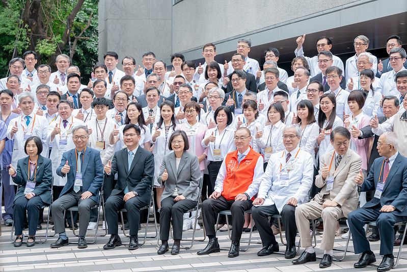 總統說,要完成這座治療中心,真的很不容易,她要感謝北榮陳威明院長和團隊全力的投入;也要特別感謝潤泰集團尹衍樑總裁,還有國產實業、宏國、宏泰及華新麗華等企業的熱心捐贈、傾囊相助,感謝我們的企業家用醫療回饋社會,造福更多的人。