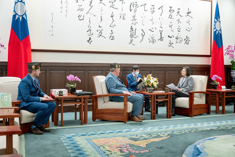 總統指出,美國海外作戰退伍軍人協會和我們的輔導會互為兄弟會。雙方多年來透過各項行動,積極促進臺美交流。她要特別感謝協會對於深化臺美關係的貢獻。