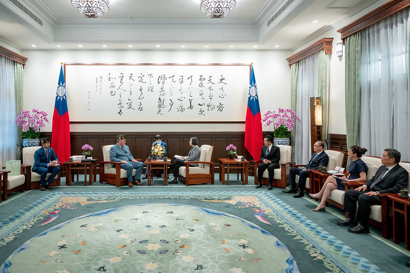 訪賓一行由國軍退除役官兵輔導委員會主任委員馮世寬陪同,前來總統府晉見總統,國家安全會議秘書長顧立雄也在座。