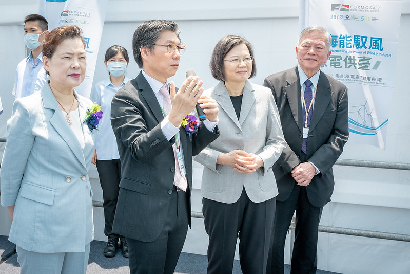 總統提到,今年將會有四個風場完工。海能風場是目前最大的,今天,大家共同見證再生能源發展的里程碑。但請經濟部繼續努力,一個目標完成,就要朝下一個目標邁進,希望很快可以聽到下一個風場完工的好消息。