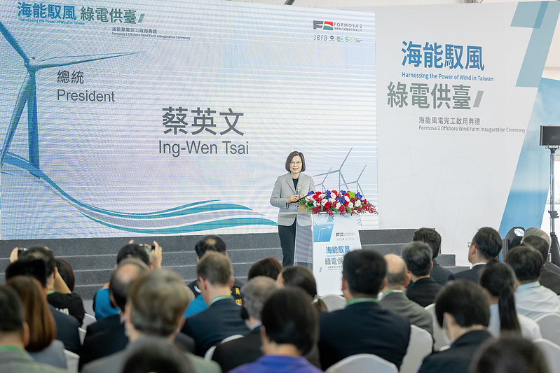 蔡英文總統今(16)日上午前往苗栗出席「海能風電完工啟用典禮」時表示,海能風電完工具備「供應產業需求,強化國際競爭力」、「展現綠電在臺灣穩健發展」及「讓供電調度更靈活、更有效率」三項重要意義。並盼臺灣持續邁向「2050淨零轉型」,集結公私部門不同領域能量,一起為臺灣努力,把挑戰變成商機。