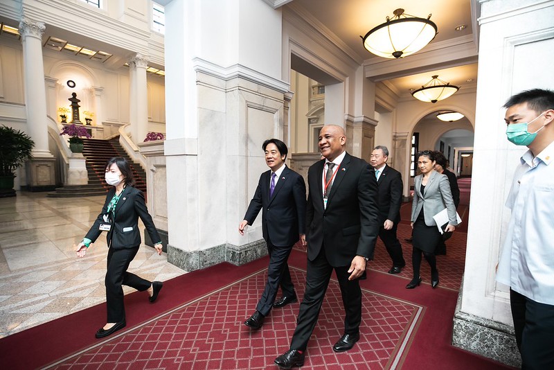 訪團成員尚包括聖露西亞駐臺大使路易斯(Robert Kennedy Lewis)等,由國安會副秘書長徐斯儉及外交部次長俞大㵢陪同,前來總統府拜會副總統。