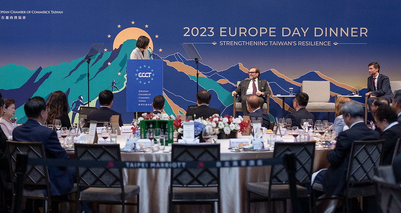 蔡英文總統今(25)日晚間出席「2023歐洲日晚宴」時指出,今晚的主題「強化台灣韌性」象徵臺歐盟歷久彌新的夥伴關係,並表彰歐洲商界在面對諸多挑戰之際,對臺灣的成長及韌性所做的貢獻。從政策到外交,臺歐合作近幾年更是持續成長。基於共享的民主價值和目標,臺歐關係相當堅實。她也期待看到未來雙邊合作有更豐碩的進展。