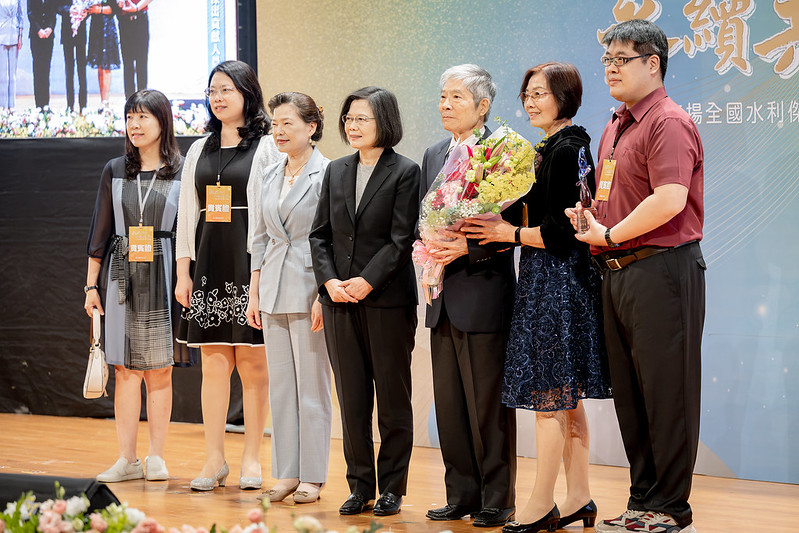 總統也特別介紹這次終身成就獎得主-台灣自來水公司前總經理陳榮藏。陳前總經理投入水利工作超過50年,不僅推動全國第一座、大型高級處理淨水廠-澄清湖淨水廠,也參與各項工程計畫,這次獲獎實至名歸。